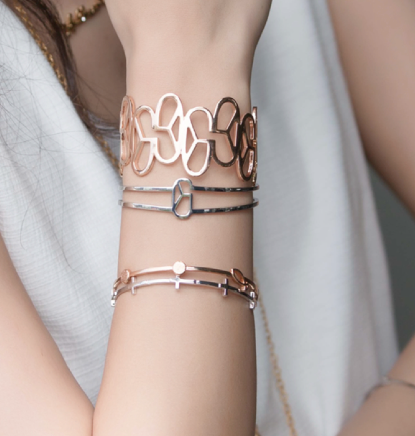 While experimenting with a series of chain-linked monogram necklaces featuring spiritual motifs in geometric shapes in 2013, they became instant product hits for their versatility and wearability. With much encouragement from friends and clients alike, she launched her brand GLY.